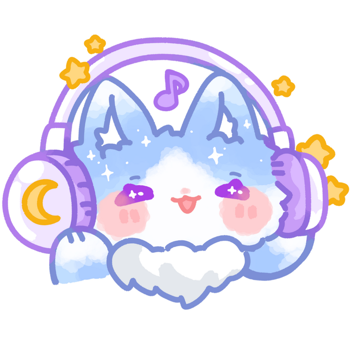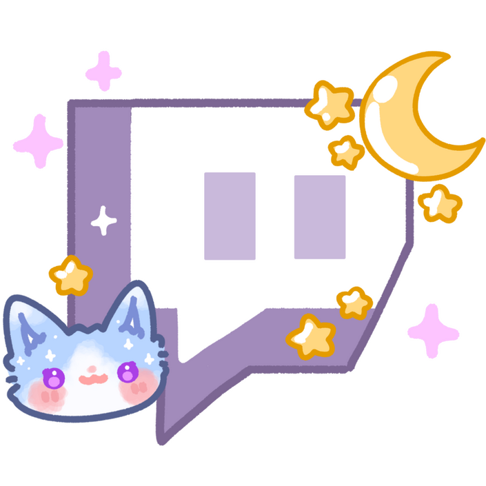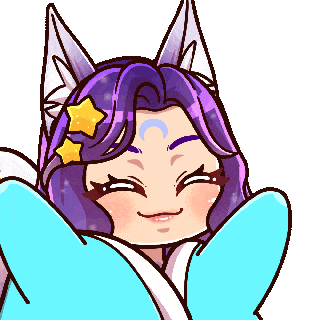 🌙 Luna — A chaotic purple-and-blue celestial fox and goddess, that enjoys stealing your snackies. Enjoyer of both gaming pain and joy.